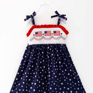 July of 4TH Flag Star Ruffle Smocked Girl Dress