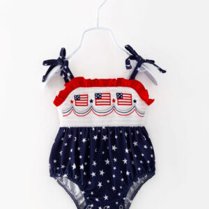 July of 4TH Flag Star Smocked Ruffle Baby Girl Romper
