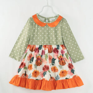 Light Green Pumpkin Ruffle Girl Twirl Dress