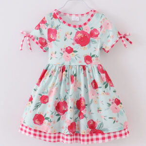 Mint Flower Plaid Girl Dress