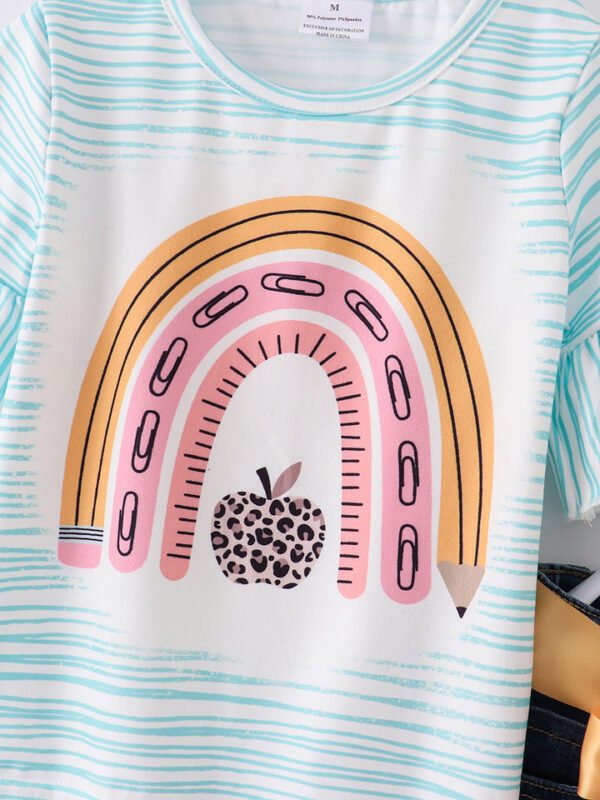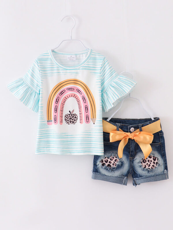 Be the first to review “Back to School Rainbow Apple Girl Denim Short Set”