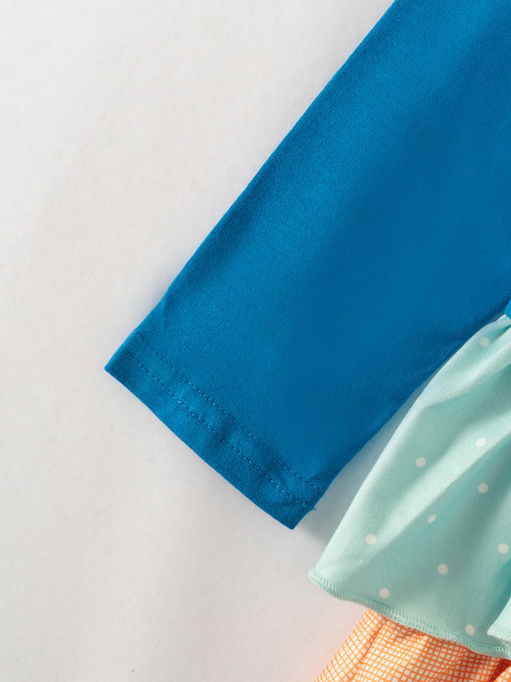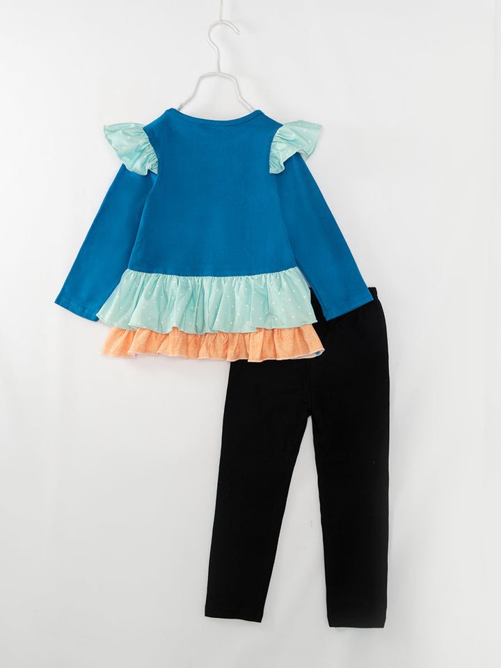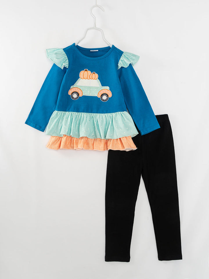 Blue Car Pumpkin Ruffle Girl Pant Set