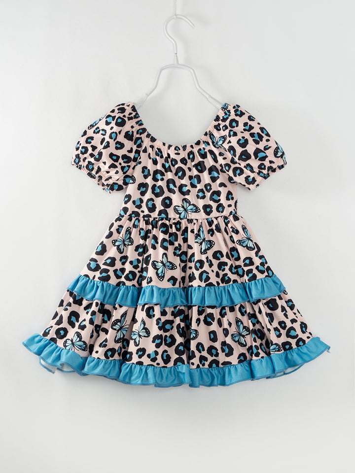 Blue Leopard Butterfly Ruffle Girl Twirl Dress