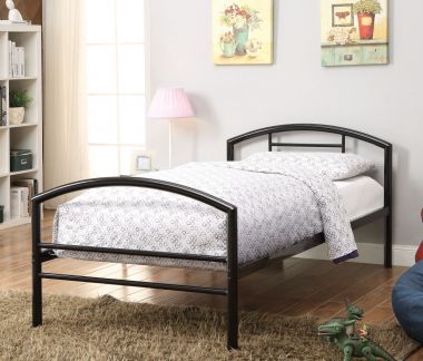 Coaster Baines Twin Metal Bed in BlackFeatures: Youth metal bedBed frame includedMattress readyFinish: Black2″ metal tubing: Strong framework ensures safety from rough useFoundation: Mattress readyMax bed weight: 400 lbsDimensions: 75″W x 39″D x 32.5″H