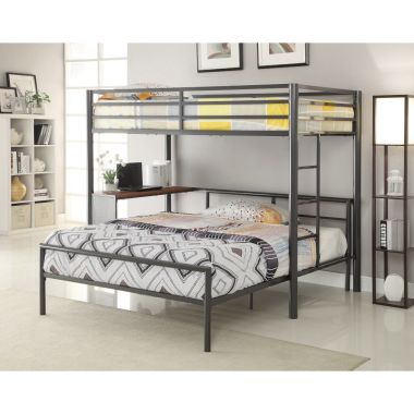 This twin workstation loft bed was designed for both work and sleep. Modern and appealing, it has everything you need. Twin bed rests on top with a built ladder on one end for simple access. The bottom area has a built-in desk area to get work done late or early. The entire piece is finished in dark gunmetal for a stately appearance.