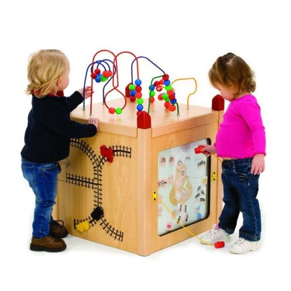 Engage young minds with gears, beads, magnets, mirrors & mazes! This island has five games built into each side that will keep little minds busy.