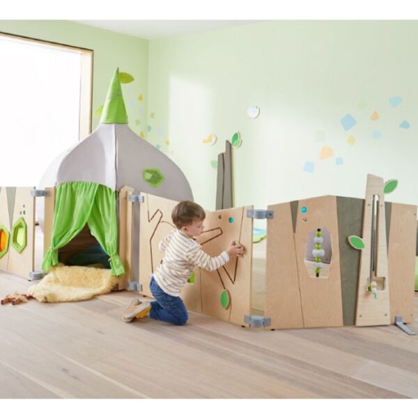 HABA Pro Grow.upp – an oasis in which being a child is simply natural. Separate play worlds or connect them by being playable on both sides. By going through a tunnel or door, little ones can go from one world to another. All Grow.upp wall/room partitions are either firmly connected to each other or connected by using eyelets. Design and color schemes perfectly match nature’s bounty. The use of various materials and elements: prisms, milling grooves, mirrors and other decor make them organically appealing. The Grow.upp concept is based on natural structure in the environment. Discover passageways, niches and sensory elements in every turn.