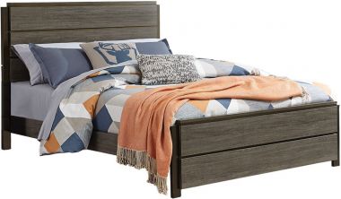 The contemporary styling of the Vestavia Collection provides a unique platform from which to style your bedroom. Faux wood printed veneer provides subtle texture and a gray finish as perfect contrast to the dark brown finish of the base rails of the case pieces and back panels of the full headboard and footboard.Features: Made of faux wood veneer, wood and engineered wood2-tone finish: antique gray and dark brownIncludes headboard, footboard and railsFoundation/box spring requiredAssembly requiredDimensions: 56.75″W x 80″D x 49″H